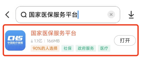 在手机应用商店中下载国家医保服务平台App。