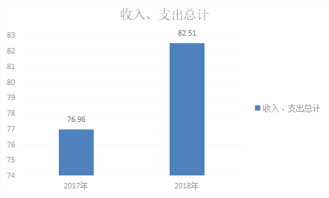 2018年度收、支总计82.51万元。与2017年相比,收、支总计各增加5.51万元,增长7.16%,主要原因是人员经费略有提高。