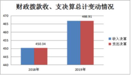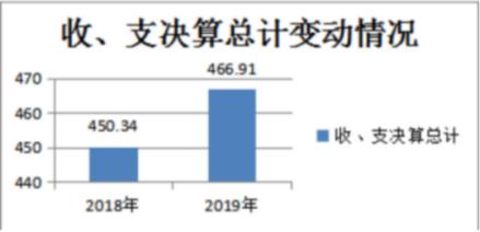 2019年度收、支总计466.91万元。与2018年相比,收、支总计各增加16.57万元,增长3.68%,主要原因一是今年新增了离退休干部党支部工作经费1.9万元,及区建管站、八吉府街等涉老单位老干部经费纳入财政预算。二是2019年全区退休干部公用经费标准由每人每年800元调整为每人每年1000元。以及离退休干部住院及去世慰问、行政十四级以上老干部重阳节及春节慰问费标准提高等。三是增加了临时工作人员并提高了工资标准。四是区委组织部拨付了一定资金用于干部培训宣传教育、老干部活动中心阵地建设等。