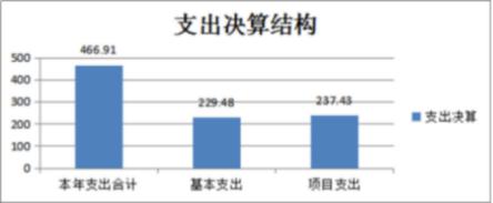 2019年度本年支出合计466.91万元。其中:基本支出229.48万元,占本年支出49.15%;项目支出237.43万元,占本年支出50.85%。
