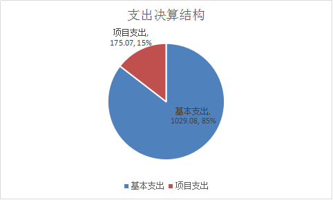 2018年度本年支出合计1204.15万元。其中:基本支出1029.08万元,占本年支出85.46 %;项目支出175.07万元,占本年支出14.54%。图3:支出决算结构