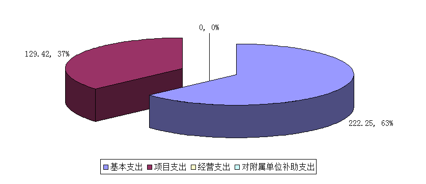 2019年度本年支出合计351.67万元。其中:基本支出222.25万元,占本年支出63.20%;项目支出129.42万元,占本年支出36.80%;上缴上级支出0.00万元,占本年支出0.00%;经营支出0.00万元,占本年支出0.00%;对附属单位补助支出0.00万元,占本年支出0.00%。