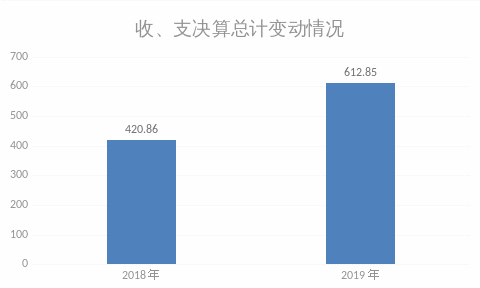 2019年度收、支总计612.85万元。与2018年相比,收、支总计各增加191.99万元,增长45.62%,主要原因是经过2019年机构改革后,原果博东方(中国)官方网站 档案局和原党史办合并,经费调整。