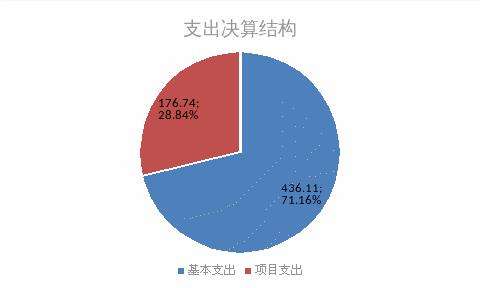 2019年度本年支出合计612.85万元。其中:基本支出436.11万元,占本年支出71.16%;项目支出176.74万元,占本年支出28.84%。