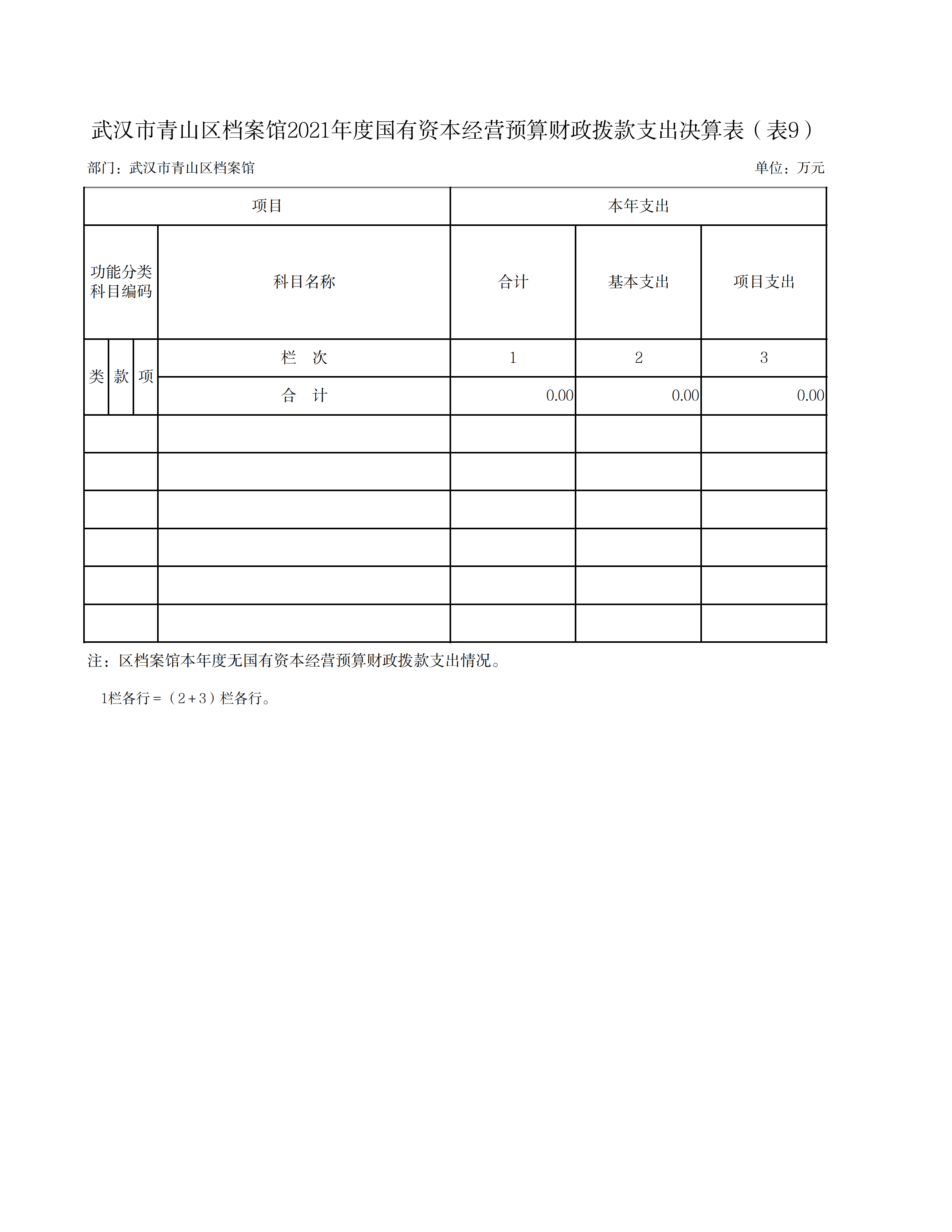 九、国有资本经营预算财政拨款支出决算表(表9)