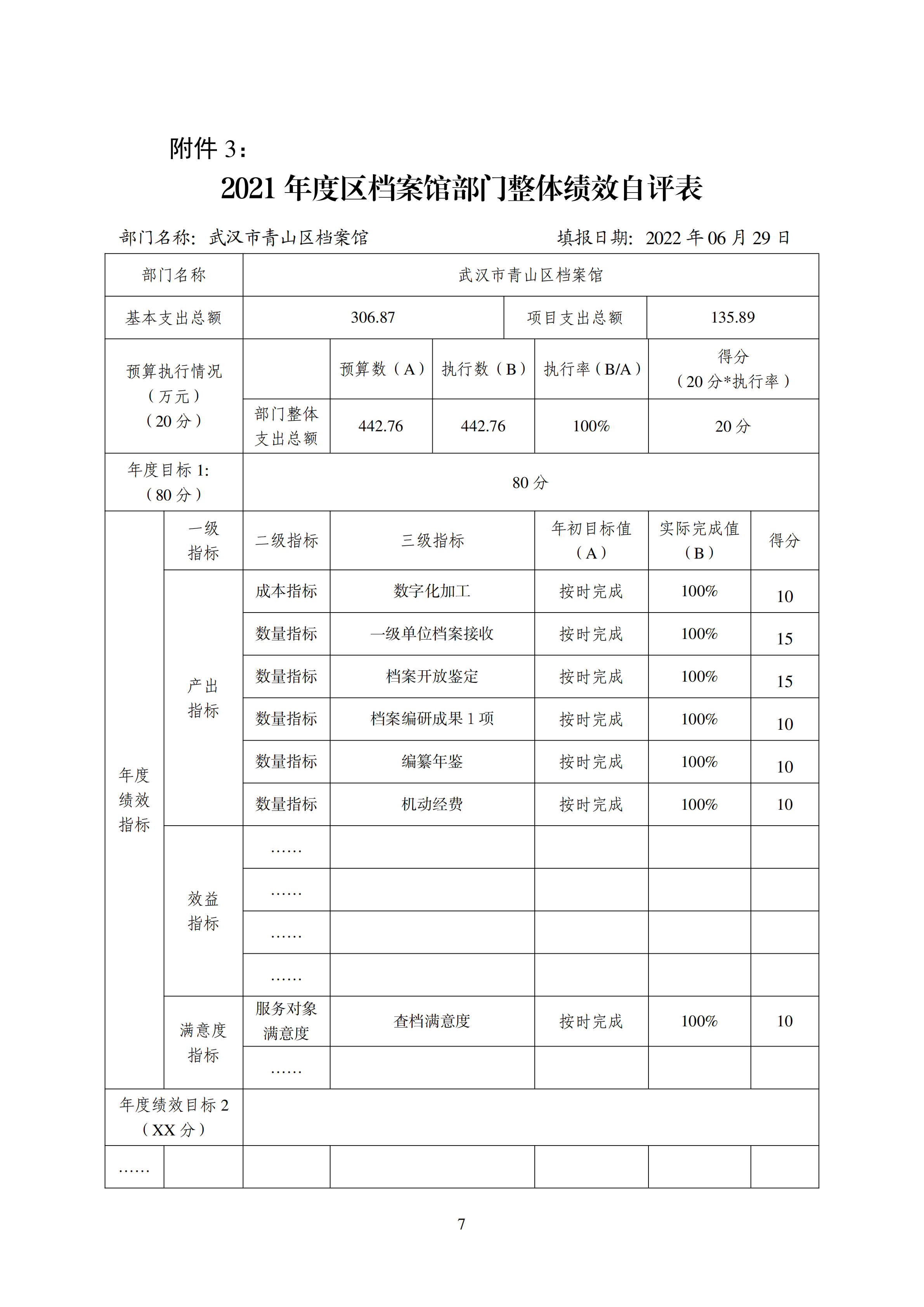 (二)区档案馆整体支出自评结果