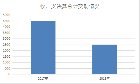 2018年度收、支总计2514万元。与2017年相比,收、支总计各减少1976万元,下降44.01%,主要原因是2017年各部门离退休人员由机关运行保障中心代发工资,2018年离退休人员经费分配至各部门,人员经费减少。