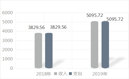 2019年度收、支总计5095.72万元。与2018年相比,收、支总计各增加1266.16万元,增长24.85%,主要原因是人员工资增资,各工作经费增加。