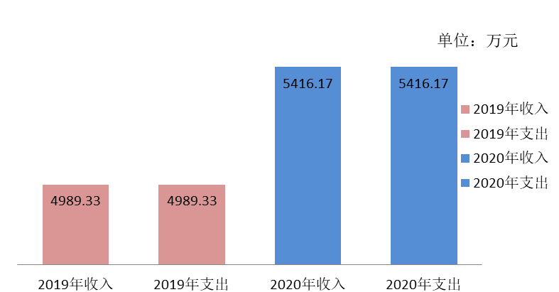 2020年度收、支总计5,416.17万元。与2019年度相比,收、支总计增加426.83万元,增长8.55%,主要原因基本支出增加52.89万元,项目支出增加373.95万元。